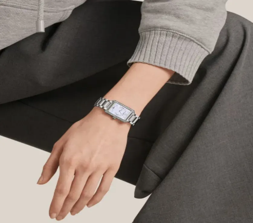 White Mother of Pearl dial set with 8 diamond hour markers (aprox. carat weight 0.3)