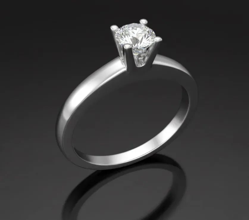 Ora diamond engagement ring with a four claw white gold setting. A single round shaped diamond set into a classic yet distinguished style ring with a mid band width of 2.0mm. The ring is available in a range of metal options and we offer a free design service for any customised changes that you may require.